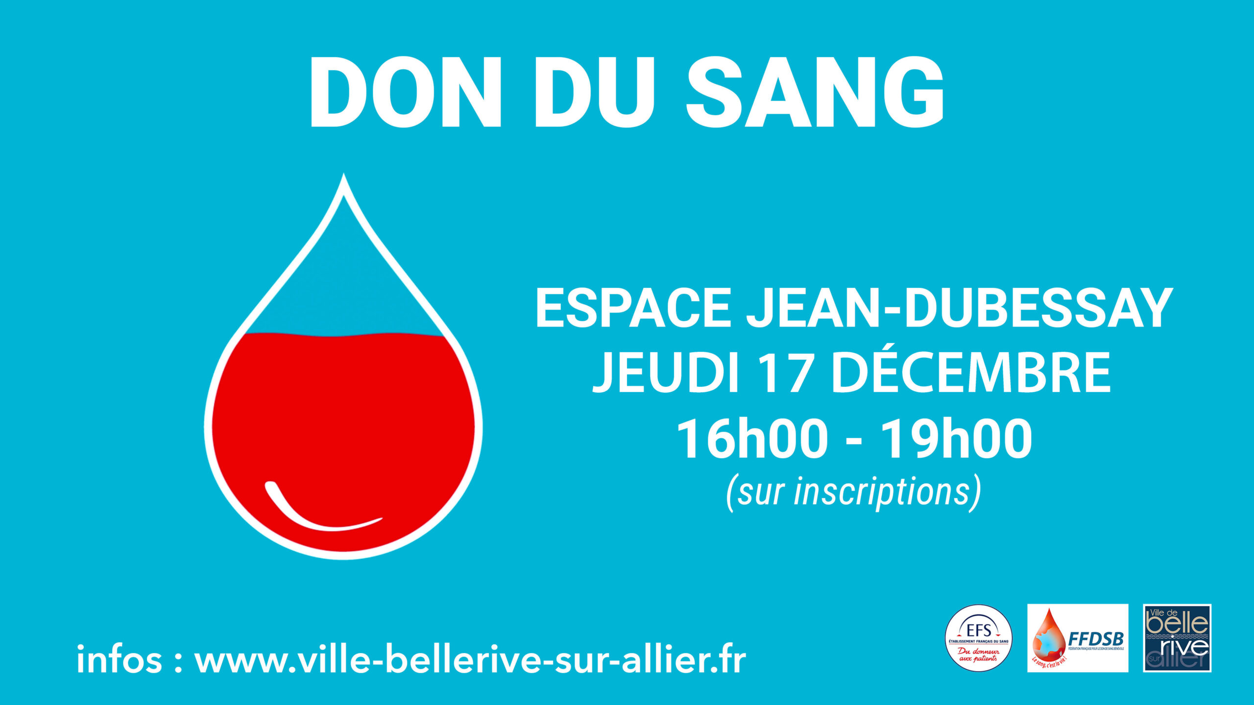 L’association pour le Don de Sang Bénévole de Bellerive et la Ville de Bellerive-sur-Allier vous invitent à participer à une collecte de sang qui se tiendra le :