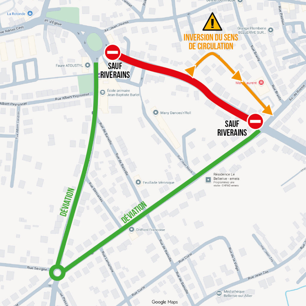 - Déviations mises en place : rue Jean-Baptiste-Burlot > avenue de Russie ; avenue de Russie > rue Jean-Baptiste-Burlot